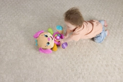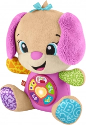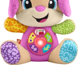 FISHER-PRICE Laugh & Learn Smart Stages Zusje is een superzachte knuffel én een slimme educatieve speelgoedvriend in één. Kinderen van 6 tot 36 maanden ontdekken eerste vaardigheden via liedjes, lichtjes en aanraakelementen. Door op de knopjes op het buikje te drukken licht het hartje op en starten liedjes, getallen of kleuren – leren wordt zo natuurlijk en vol plezier.