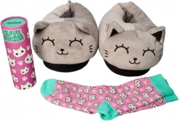 Verwen je voeten met zacht comfort met deze pluchen pantoffels in de vorm van grijze katten. Het zijdezachte oppervlak, schattige geborduurde details en de stabiele zool maken deze sloffen tot de ideale keuze voor thuis, het vakantiehuis of relaxen voor de tv.
