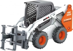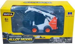 Realistisch model van een wiellader met grijper in schaal 1:50, gemaakt van duurzame metalen legering en kunststof, met precieze details en functionele elementen. Heeft een metalen constructie, een beweegbare arm en grijper, rubberen wielen voor soepel rijden en een aantrekkelijk zwart‑wit design met oranje details. Geweldig voor verzamelaars, als decoratie en als educatief speelgoed.