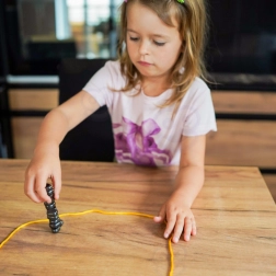 De flexibele koord creëert snel een “speelveld” waar dan ook. Zo blijft het spel overzichtelijk op tafel en onderweg.