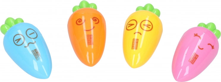 Praktische puntenslijper voor één potlood in de vorm van een wortel, leuk voor zowel kinderen als volwassenen. Biedt vier vrolijke kleuren en veilig, schoon slijpen voor school, kantoor en thuis.