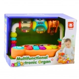 De interactieve educatieve piano is uitgerust met toetsen die geluiden produceren, melodieën afspelen en notenaanduidingen hebben, wat het kind aanmoedigt om te drukken, te luisteren en met muziek te experimenteren. Bovendien is de piano voorzien van een kleurrijke boog met interactieve speelgoedjes, die bewegende elementen aan het spel toevoegt.