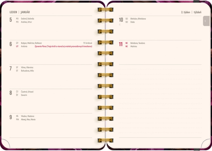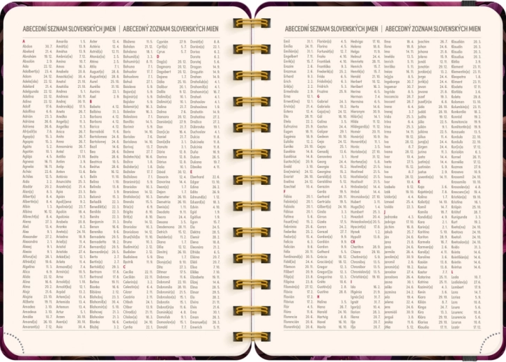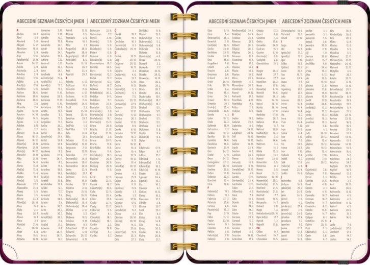 - Bevat een lijst met Tsjechische en Slowaakse namen met feest- en naamdagen.