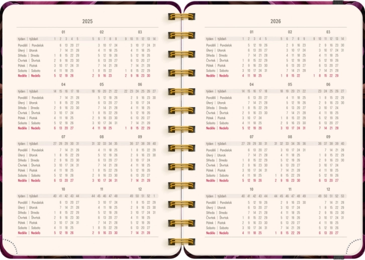 Spiraalagenda Petito met paarse bloemen voor 18 maanden voor de jaren 2025/2026, ideaal voor planning en organisatie.