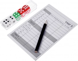 Deze veelzijdige set biedt alles wat je nodig hebt voor Yams en andere dobbel- en gezelschapsspellen. Dobbelstenen met goed leesbare stippen, een meegeleverde blocnote voor het noteren van de scores en een potlood laten je altijd en overal spelen. Dankzij het stevige etui blijft alles netjes bij elkaar.