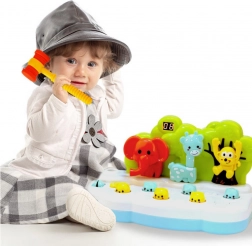 Dankzij de licht- en geluideffecten die tijdens het spel worden geactiveerd, zullen kinderen zich langere tijd vermaken. Het apparaat werkt op batterijen, wat draadloos spelen overal mogelijk maakt. In de set zit een veilig, licht hamertje dat perfect is afgestemd op kinderhanden, gemaakt van veilige en duurzame materialen. Het kleurrijke en vriendelijke design en de sympathieke dierfiguren maken het spel zeer geliefd bij kinderen en het is bovendien een geweldig cadeau.