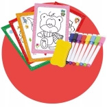 Alles is inbegrepen voor direct gebruik: 8 drooguitwisbare stiften, een uitwis-sponsje, een set gekleurde bouwsteentjes en 18 dubbelzijdige kaarten voor herhaald oefenen. De analoge klok met beweegbare wijzers helpt bij het leren klokkijken. Stabiele pootjes en een praktisch handvat maken dragen en veilig gebruik eenvoudig.