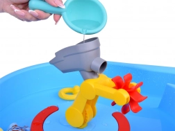 Deze blauwe watertafel is ideaal voor kinderen die van waterspelletjes houden. Zijn compacte formaat maakt het gemakkelijk om overal te plaatsen en eenvoudig te vervoeren. Beweegbare delen stimuleren de nieuwsgierigheid van kinderen. Dankzij activiteiten zoals draaien, schenken en spetteren zal deze tafel je kinderen veel plezier bieden.
