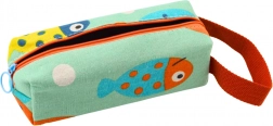 Gemaakt van duurzaam textielmateriaal in een lichte zeekleur, versierd met een charmante print van lachende, bontgekleurde vissen en contrasterende details – een intens oranje rits en een draaglus. De etui heeft een doordachte enkelvoudige compartimentconstructie met een stevige rits, wat zorgt voor snelle toegang tot de inhoud en veilige opslag van alle basis schoolbenodigdheden – pennen, potloden, kleurpotloden, gummen of linialen.