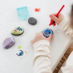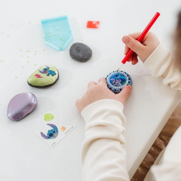 Deze leuke creatieve set zorgt voor uren knutselplezier. Dankzij wrijfstickers en circa 400 stuks decoratieve steentjes maak je eenvoudig originele steentjes geïnspireerd op het geliefde Stitch-motief. Als de stenen uit de verpakking op zijn, kun je verder werken met vondsten uit de natuur.