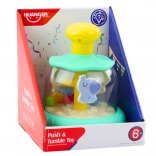 De Carousel is een ideaal speeltje voor kleine ontdekkers. Bij het indrukken van de gele knop begint het speelgoed te draaien, en bewegen de dieren rond hun eigen as, wat een dynamisch en kleurrijk effect creëert. Dit speelgoed helpt vaardigheden te ontwikkelen zoals visuele en auditieve coördinatie, evenals de verbanden tussen oorzaak en gevolg.