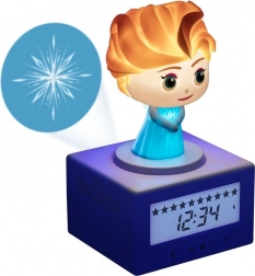 Lichtgevende tafelwekker met een figuurtje van prinses Elsa uit de film Frozen. Bevat een USB-kabel voor voeding en projectie op de muur voor makkelijker inslapen.