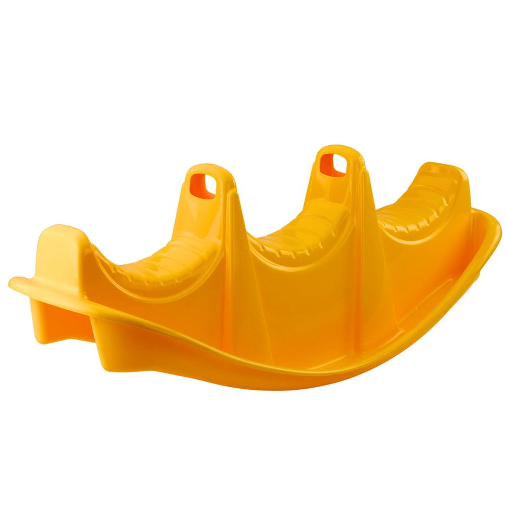 De kinderwip van het type rocker biedt drie anatomisch gevormde zitplaatsen en ergonomische handgrepen voor comfort en veiligheid tijdens het schommelen. De heldere kleur stimuleert kinderen om te spelen en bevordert sociale interactie. Geschikt voor tuin, speelplaats, speelruimte of thuisgebruik.