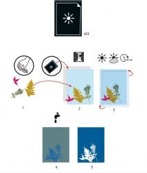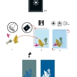 Met de set lichtgevoelig papier van Djeco verander je zonnestralen in een creatieve ervaring. Leg natuurlijke materialen, sjablonen of kleine voorwerpen op het papier, laat de zon zijn werk doen en na het afspoelen in water verschijnen subtiele schaduwen en silhouetten op een blauwe achtergrond. Eenvoudig proces, verbluffend resultaat.