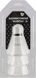 De set bevat drie witte kunststof badmintonshuttles, ontworpen voor hobby- en recreatief gebruik. Dankzij de constructie van de shuttles behaalt u optimale prestaties bij elke slag.