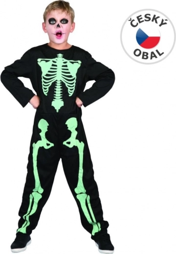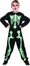Dit carnavalskostuum voor jongens toont een skelet dat oplicht in het donker, een ideale keuze voor elk kinderfeest. Het kostuum bevat een overall met elementen die oplichten in het donker, wat bijdraagt aan de effectiviteit en het plezier.