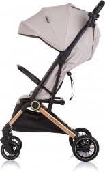 De kinderwagen Chipolino Pixie Tiramisu heeft een licht en compact ontwerp dat gemakkelijk met één hand kan worden ingeklapt en verplaatst met behulp van een uitschuifbare handgreep, vergelijkbaar met een koffer. Deze kinderwagen is uitgerust met snel los te maken geveerde wielen met een schakelrem op de achterwielen voor veilige ritten.