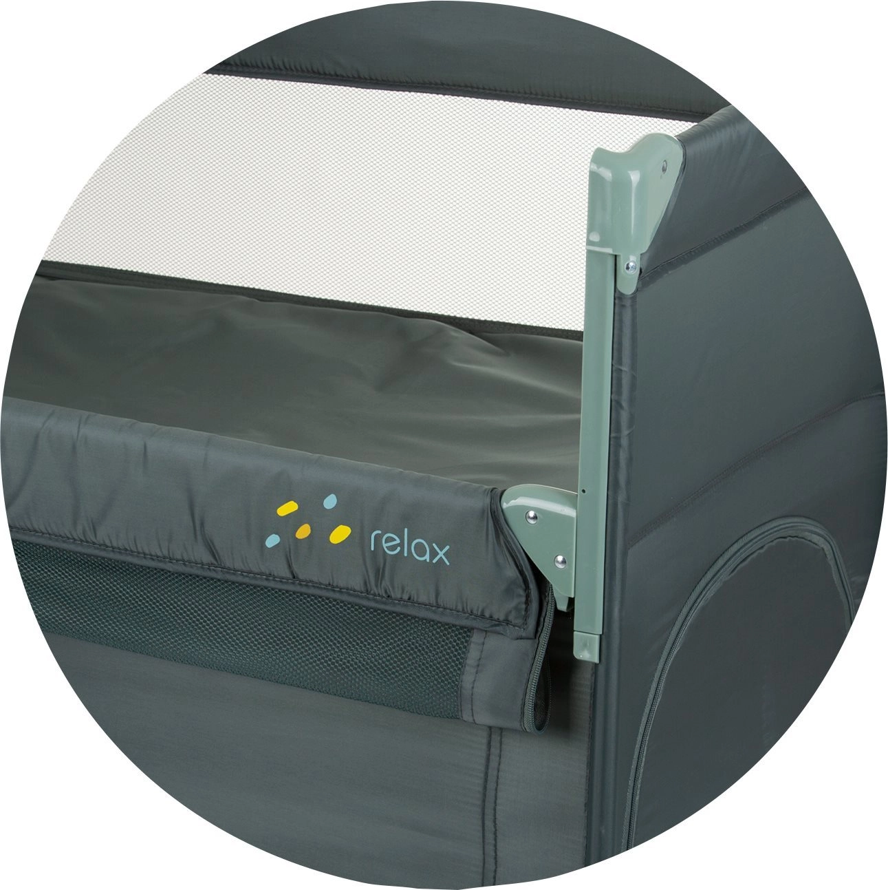 De babywieg Relax is de perfecte oplossing voor ouders die hun baby ook ’s nachts dicht bij zich willen hebben. Dankzij de neerklapbare zijwand en twee verschillende hoogteniveaus kun je hem eenvoudig en veilig naast je eigen bed plaatsen. Praktische wieltjes met rem maken het gemakkelijk om de wieg door de kamer te verplaatsen.