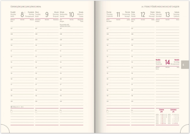 De agenda is niet alleen praktisch, maar dankzij de rode kleur ook stijlvol en opvallend. Hij helpt je bij het organiseren van taken en belangrijke afspraken in meerdere talen – waaronder Engels, Duits, Hongaars en Russisch.