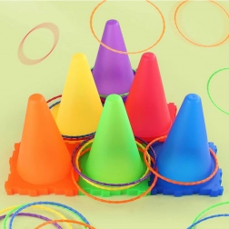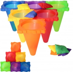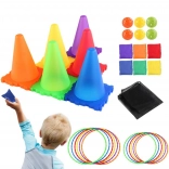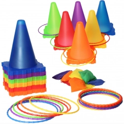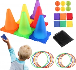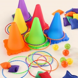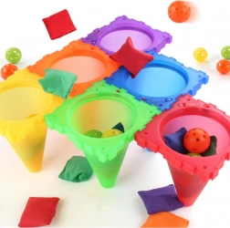Gooi balletjes in de openingen van de kegels, werp zachte zakjes op een doel en gooi ringen over de kegels – combineer disciplines en bedenk je eigen regels voor elke gelegenheid.