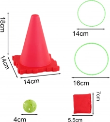 • 3 spellen in 1: balletjes in kegels, zakjes werpen, ringenwerpen
