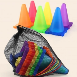• Eenvoudig opbergen: stapelbare kegels en een draagnet