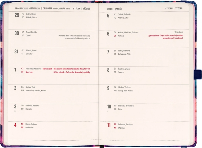• Veertiendaags horizontaal kalendarium met Tsjechische en Slowaakse feestdagen voor overzichtelijke planning.