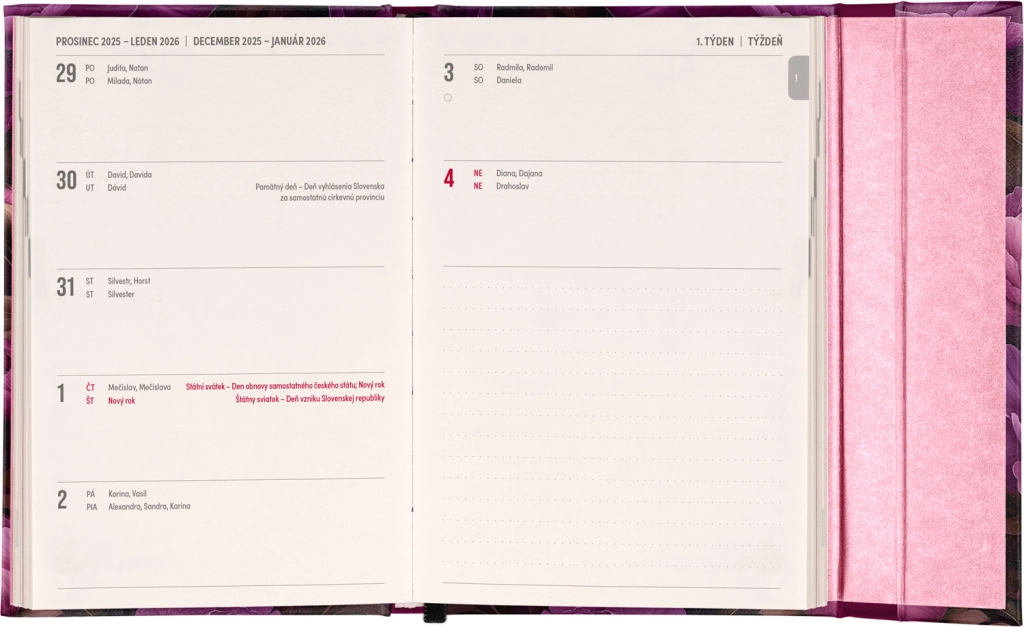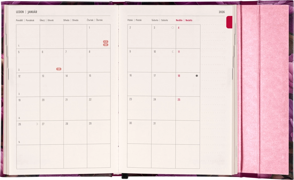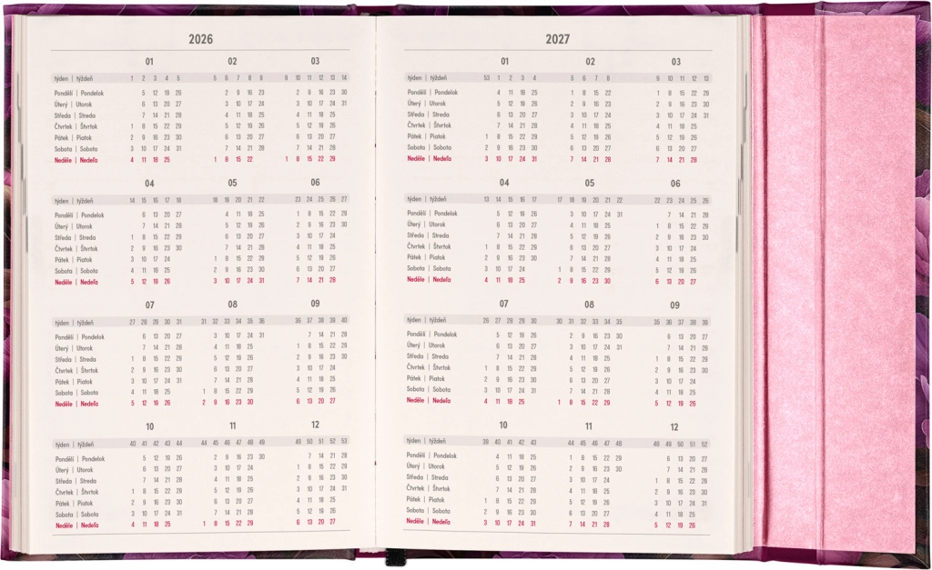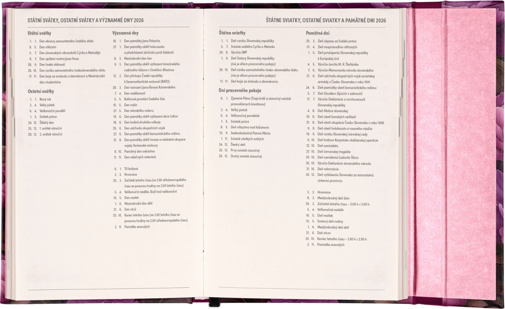Houd je planning overzichtelijk met deze stijlvolle wekelijkse agenda met magnetische sluiting. Bevat een Tsjechische en Slowaakse kalender met ruimte voor notities en maandoverzichten voor efficiënt plannen.