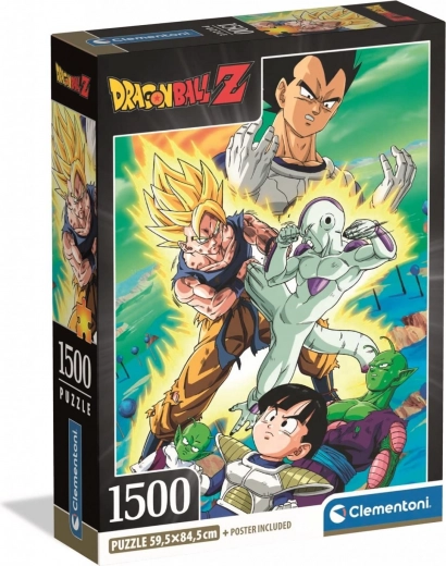 Duik in de wereld van Dragon Ball Z met deze geweldige puzzel met 1500 stukjes van het merk Clementoni, die na het leggen ongeveer 59,5 x 84,5 cm meet.