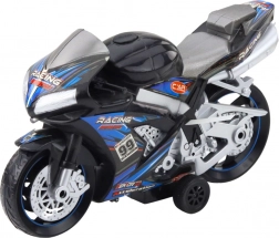 Deze zwart-blauwe motor is gemaakt van hoogwaardig kunststof, is bestand tegen beschadigingen en heeft stevige, brede wielen met stabiele ondersteuning, wat zorgt voor veilig en comfortabel spelen op verschillende ondergronden. De licht- en geluidseffecten kunnen worden geactiveerd door op een knop te drukken - realistische motorgeluiden en lichtflitsen spreken kinderen aan en geven het spel een realistisch karakter.