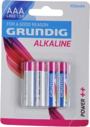Betrouwbare alkaline AAA-batterijen met een spanning van 1,5 V van het merk GRUNDIG, in een praktische verpakking van 4 stuks. Ideaal voor dagelijks gebruik in speelgoed, afstandsbedieningen en andere huishoudelijke apparaten. Bieden een lange levensduur en stabiele prestaties voor uw elektronische behoeften. Alkalinetechnologie, spanning 1,5 V, maat AAA (LR03), verpakking 4 stuks.