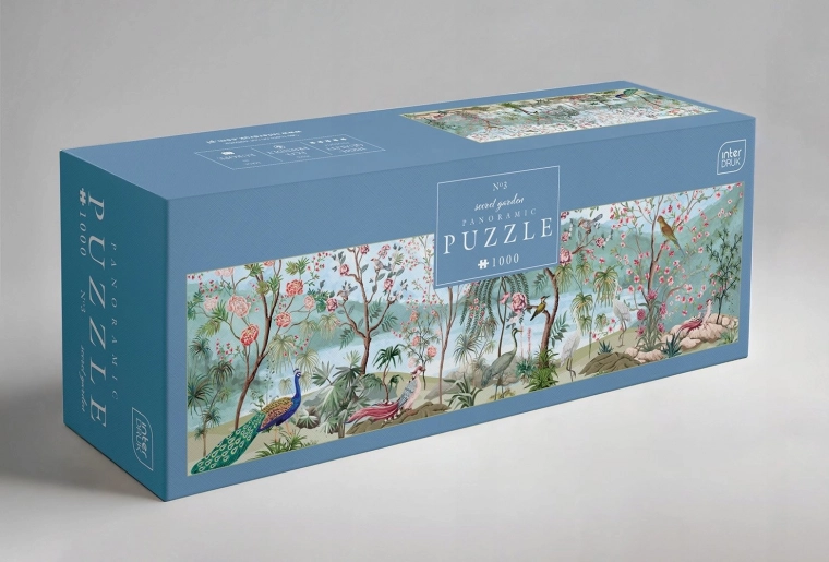 Ontsnap naar de wereld van de natuur met de panoramische puzzel van het merk Interdruk. Stel een indrukwekkend beeld vol schoonheid en details samen dankzij 1000 stukjes, die de magie van de geheime tuin direct in je huis brengen.