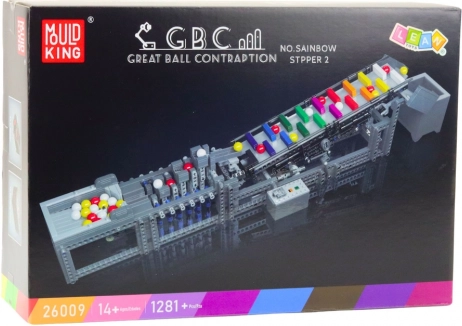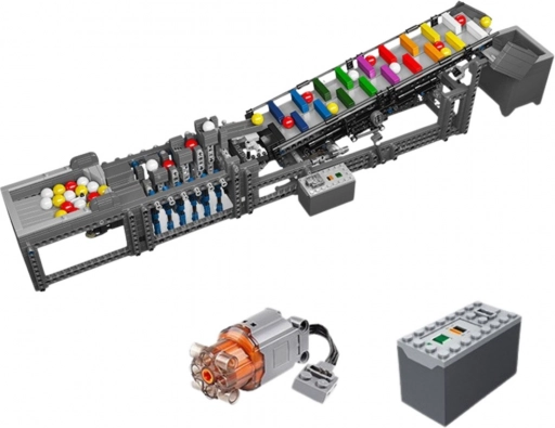 Bouwset (1281 onderdelen), elektrische motor, besturingsmodule, gekleurde knikkers, montagehandleiding, originele verpakking