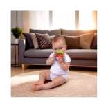 Verschillende oppervlakken masseren het tandvlees en verzachten het doorkomen van de eerste tandjes, ideaal formaat voor kleine handjes.