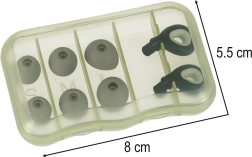 - 3 maten dopjes (S, M, L) voor een comfortabele, zekere pasvorm