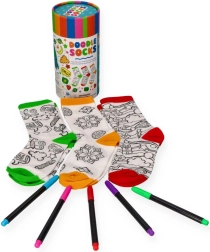 Ontdek de leuke creatieve set met sokken om in te kleuren in een praktische koker – een geweldig cadeau voor kleine én grote makers. Inclusief een universele maat die zich comfortabel aanpast en een veilige uitvoering met een CE-conformiteitsverklaring. De perfecte activiteit voor kinderen vanaf 3 jaar die fijne motoriek, creativiteit en originele stijl stimuleert.