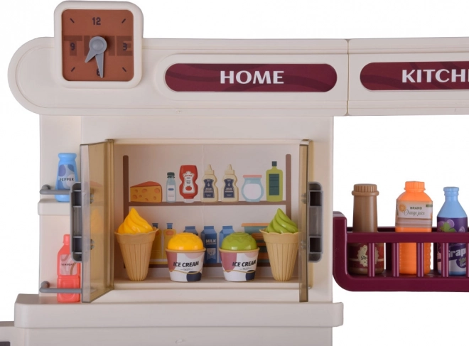 Interactieve kinderspeelkeuken met stoom, licht en geluid, beige