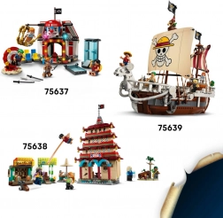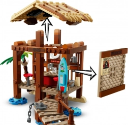 Ontdek de sfeervolle strandhut op palen met een steiger, palmboom en een piratenbootje. Het afneembare dak geeft toegang tot het verfijnde winkelinterieur met toonbank, drankjes en voorraden. Bevestig een “Wanted”-poster aan de muur en voeg er meer uit de ONE PIECE-serie aan toe. De set is ideaal voor fans van anime en piraten die iconische scènes willen herbeleven of hun eigen verhalen willen maken.