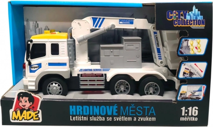 Een realistische luchthavenserviceauto die jonge fans van techniek en vliegtuigen zal verrassen. Voorzien van een uitschuifbaar navigatielicht, licht- en geluidseffecten en direct speelklaar dankzij de batterijen in de verpakking. Ideaal speelgoed voor kinderen vanaf 3 jaar.