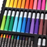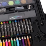 De set bevat in totaal 86 stuks, inclusief kleurpotloden, stiften, was- en oliepastels voor onbeperkte creativiteit.