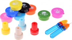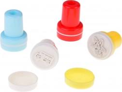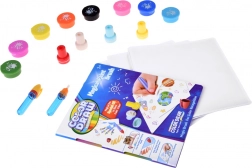 Maak originele patronen met kleurrijke stempels en opzetstukken. Kinderen maken eenvoudig decoraties, stipjes en simpele motieven.