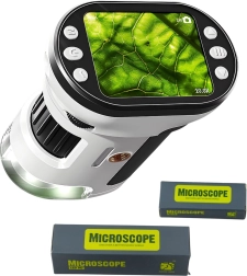 Ontdek de microwereld met de digitale kindermicroscoop met HD‑display en vloeiende vergroting van 200×–1000×. Het geïntegreerde 2,0"‑display maakt het eenvoudig om te observeren, foto’s en video’s te maken en deze op te slaan op de meegeleverde 32GB microSD. Drie gebruikswijzen – handheld, op statief en stationair – maken dit een veelzijdig en mobiel leermiddel dat wordt gevoed via USB of AA‑batterijen.