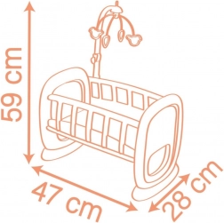 Schattige wieg voor poppen Baby Nurse van het merk Smoby combineert een wieg en een bedje in één. Dankzij de handmatig draaibare mobiel valt je baby – de pop – gemakkelijk in slaap, terwijl de stabiele constructie en het gemakkelijk afwasbare oppervlak zorgen voor comfortabel en veilig spelen. Gemaakt in Frankrijk met 63% gerecyclede materialen en geschikt voor poppen tot 42 cm.