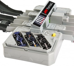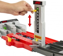 Stap in de wereld van hogesnelheidsduels met de Hot Wheels-baan, geïnspireerd op stedelijke Formule 1-circuits. Kinderen lanceren tot drie metalen F1-modellen via de krachtige drievoudige launcher, razen door kombochten en hoogteverschillen en de winnaar wordt bepaald bij de finishpoort met rondenteller.