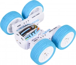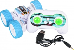 De RC stuntauto POWER STUNT blinkt uit in wendbaarheid en spectaculaire trucs. Dankzij de grote rubberen wielen kan hij oneffenheden aan, rijdt hij vooruit en achteruit, rechts en links, zijwaarts en kan hij 360° draaien. De dubbelzijdige constructie maakt doorgaan mogelijk, zelfs na het omvallen. Kleurrijke LED-verlichting zorgt voor een geweldige show tijdens het rijden.