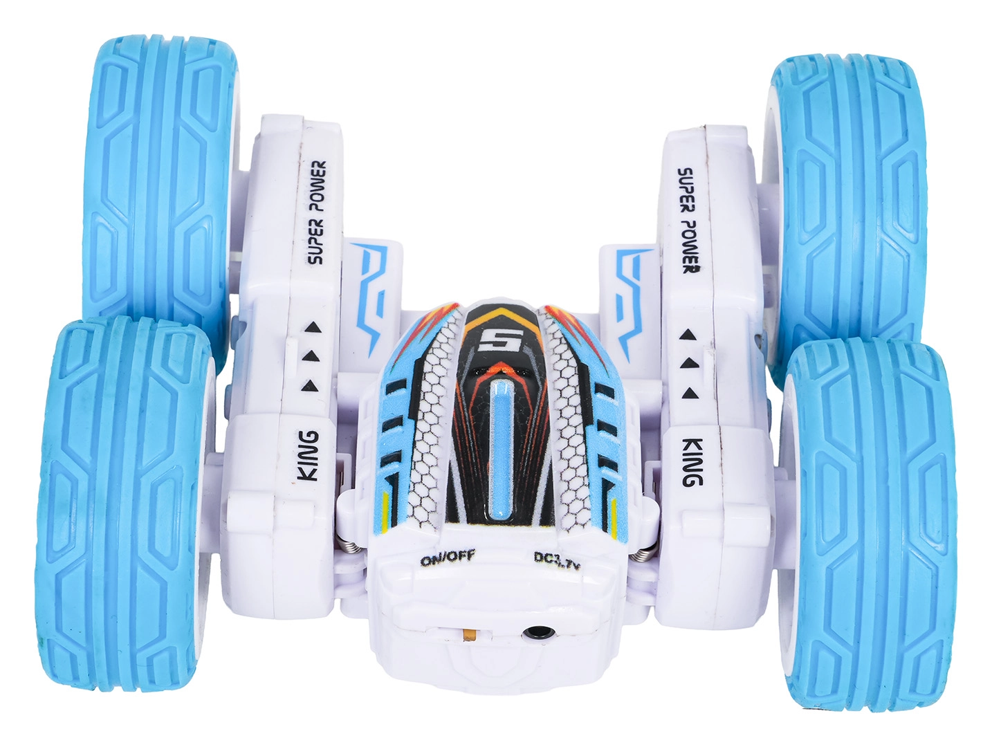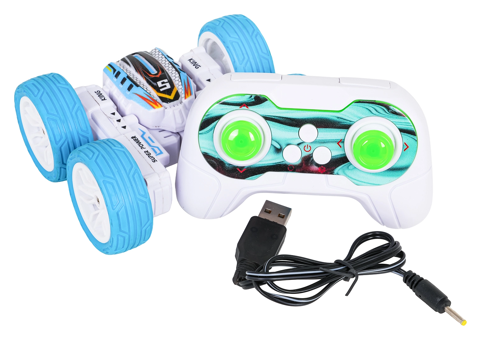 Het leuke RC-stuntauto in schaal 1:32 voor kinderen vanaf 6 jaar biedt 360° spins, zijwaarts rijden en dubbelzijdig rijden, rubberen banden met uitstekende tractie en kleurrijke lichteffecten. De robuuste constructie en eenvoudige bediening zorgen voor veel actieplezier binnen en buiten.