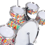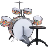 Deze lichte en stabiele kinderdrumset biedt een rijke combinatie van klanken dankzij vijf drums en een metalen bekkentje. Met het meegeleverde krukje zitten kinderen comfortabel terwijl ze de eerste ritmes leren, en het pedaal bij de basdrum zorgt voor een realistische speelervaring.
