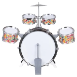 - Complete uitrusting: 5 drums, metalen bekkentje, pedaal, 2 stokken en krukje.