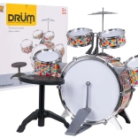 Vijf drums, een metalen bekkentje, 2 stokken en een krukje – alles wat een kind nodig heeft om met muziek te beginnen, in één pakket.