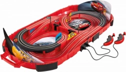 - 1× auto Bliksem McQueen, 1× auto Dinoco Cruz, rechte stukken, bochten, steunen, vangrails, draagkoffer, voedingsdeel, 2× regelaar, handleiding